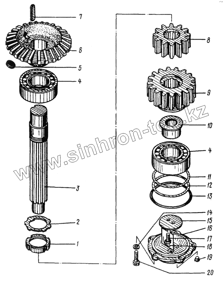 Каталог запасных частей к технике: Ковровец Э-652Б. 652.033 Вал вертикальный