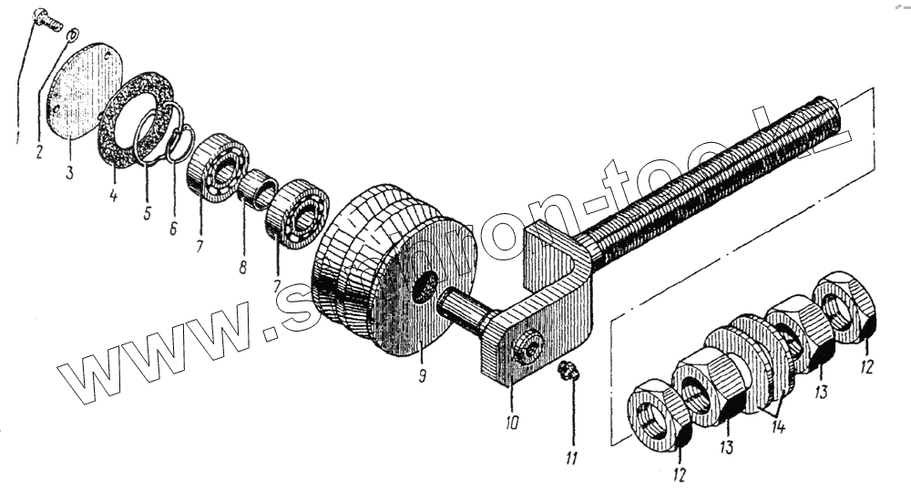 Каталог запасных частей к технике: Ковровец Э-652Б. 652.080.13 Ролик натяжной в сборе