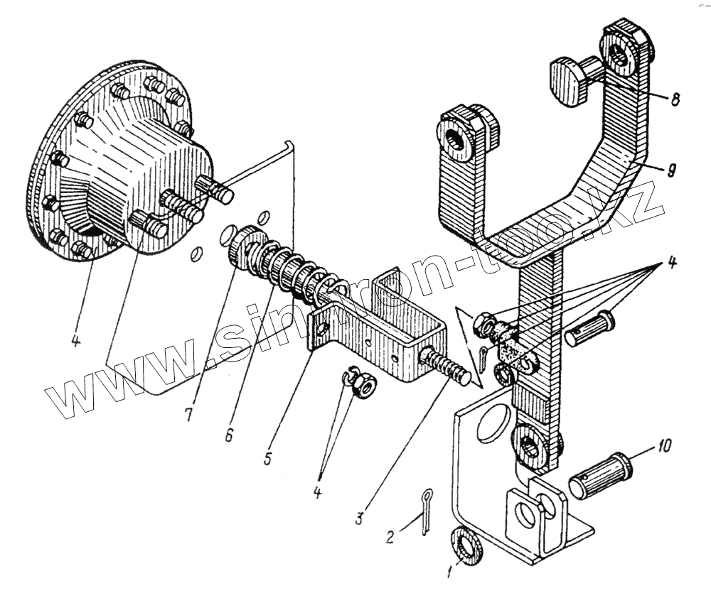 Каталог запасных частей к технике: Ковровец Э-652Б. 652.137 Управление кулачковой муфтой реверса главной лебедки