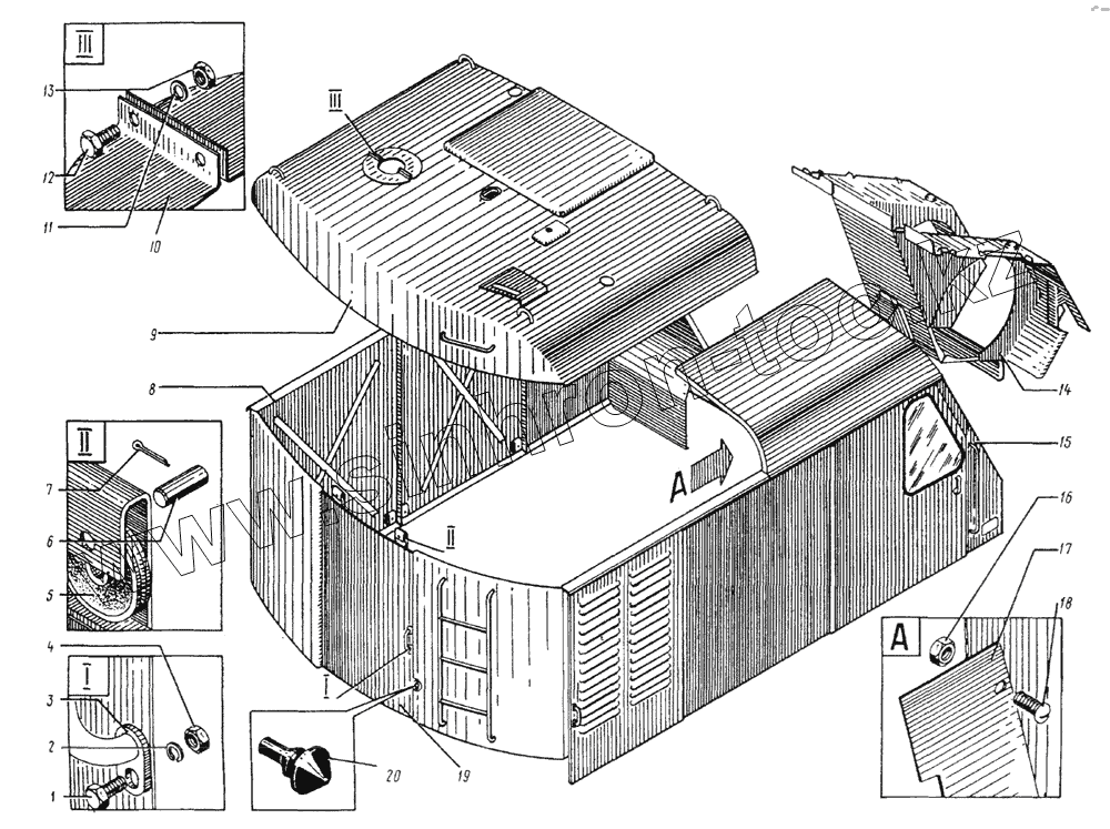 Каталог запасных частей к технике: Ковровец Э-652Б. 652.720 Кабина