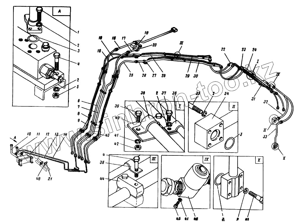 Каталог запасных частей к технике: Ковровец ЭО-4124. Гидроразводка рабочего оборудования грейфер