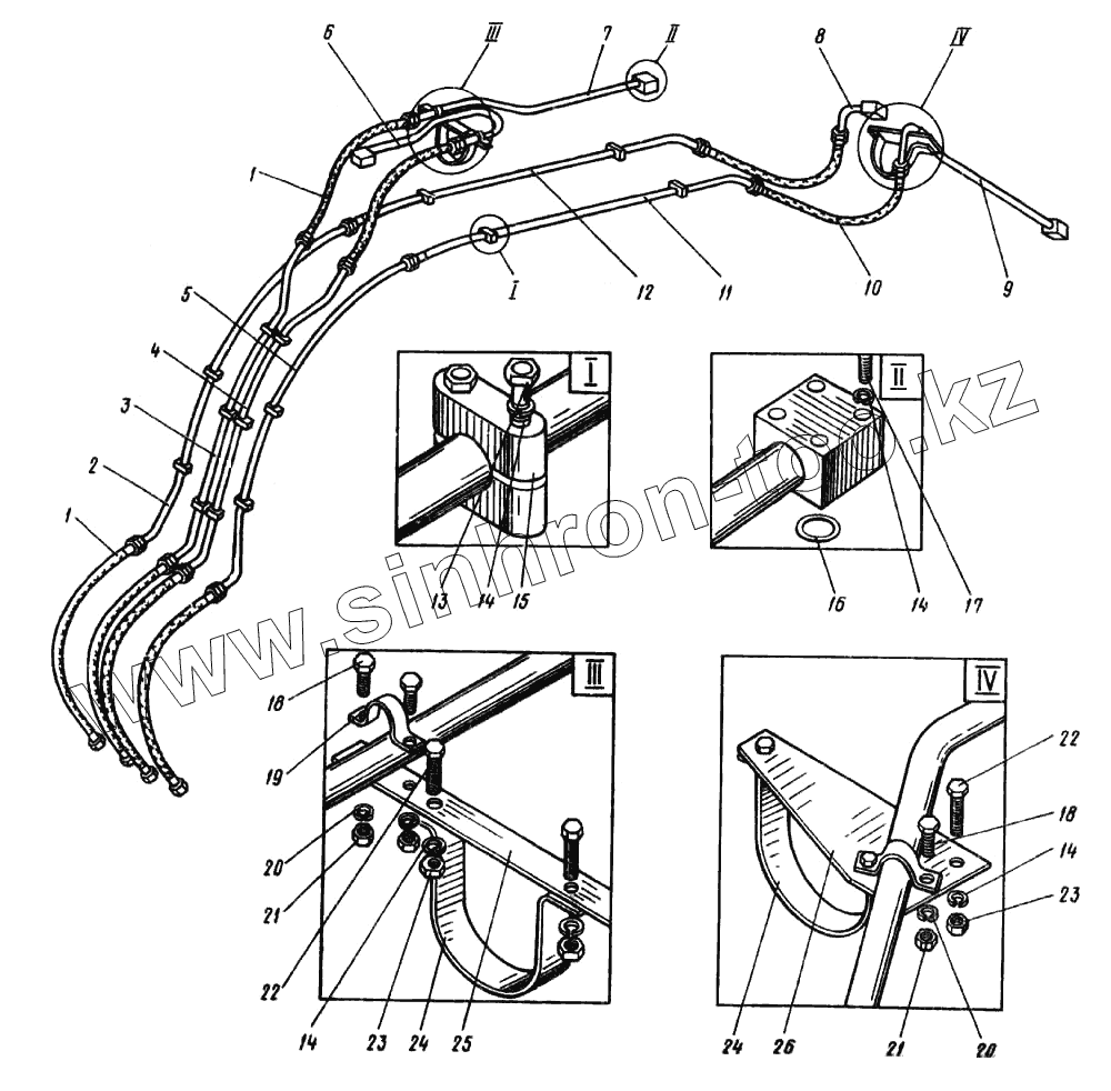 Каталог запасных частей к технике: Ковровец ЭО-4124. Гидроразводка рабочего оборудования обратная лопата
