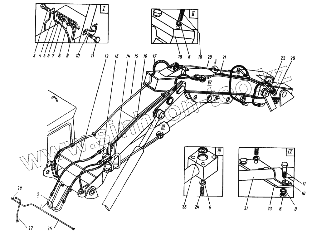 Каталог запасных частей к технике: Ковровец ЭО-4124. Гидроразводка рабочего оборудования прямая лопата