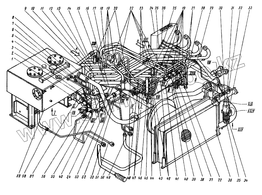 Каталог запасных частей к технике: Ковровец ЭО-4124. Гидросистема экскаватора