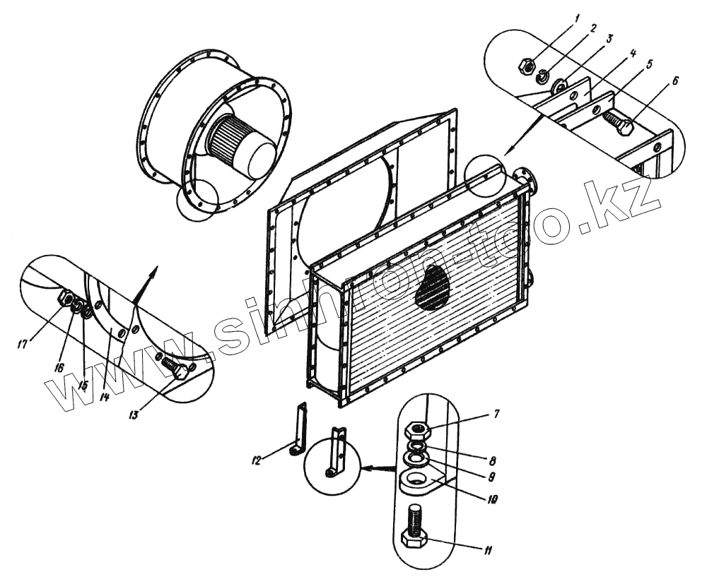 Каталог запасных частей к технике: Ковровец ЭО-4124. Установка вентилятора с калорифером