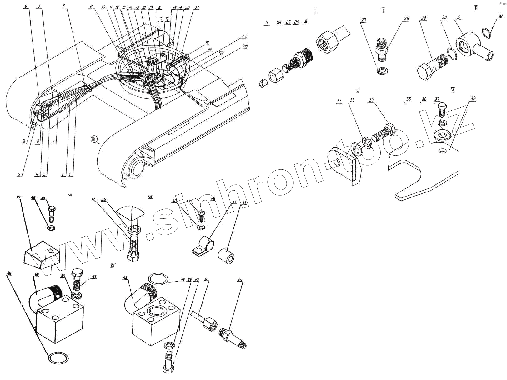Каталог запасных частей к технике: Ковровец ЭО-4225А. Гидроразводка тележки
