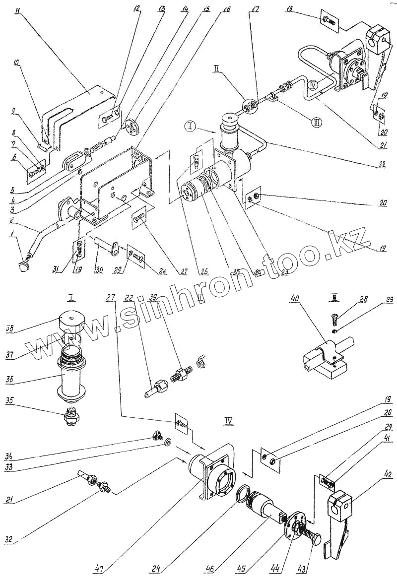 Каталог запасных частей к технике: Ковровец ЭО-4225А. Управление муфтой двигателя