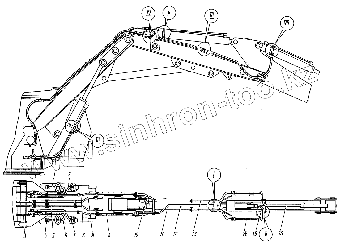 Каталог запасных частей к технике: Кранэкс МТП-71А. Гидроразводка рабочего оборудования обратная лопата