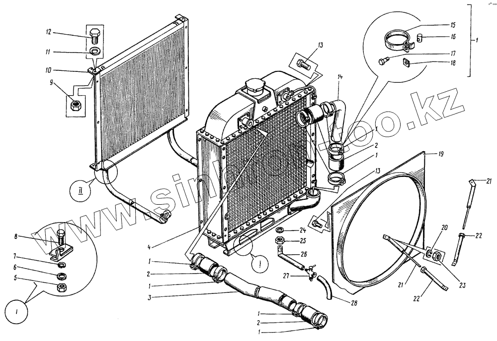Каталог запасных частей к технике: Кранэкс МТП-71А. Установка радиаторов