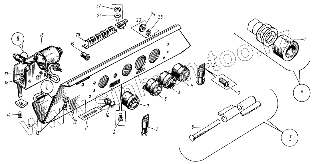 Каталог запасных частей к технике: Кранэкс МТП-71А. Установка щитка приборов