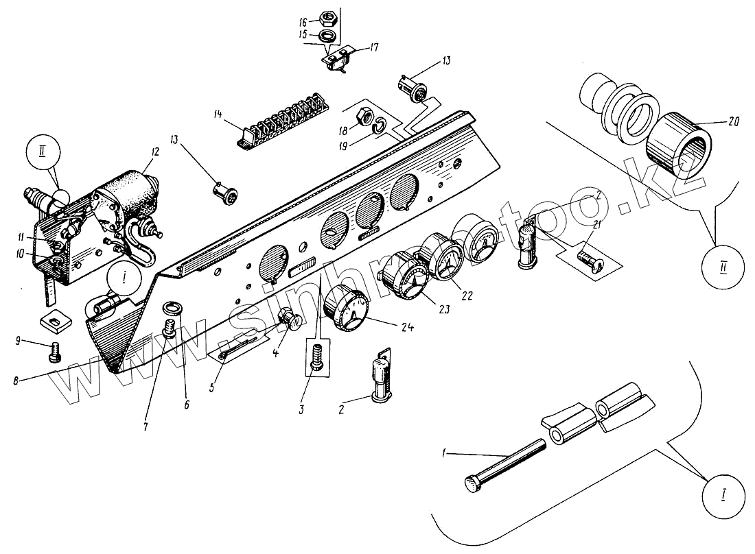 Каталог запасных частей к технике: Кранэкс МТП-71А. Установка щитка приборов