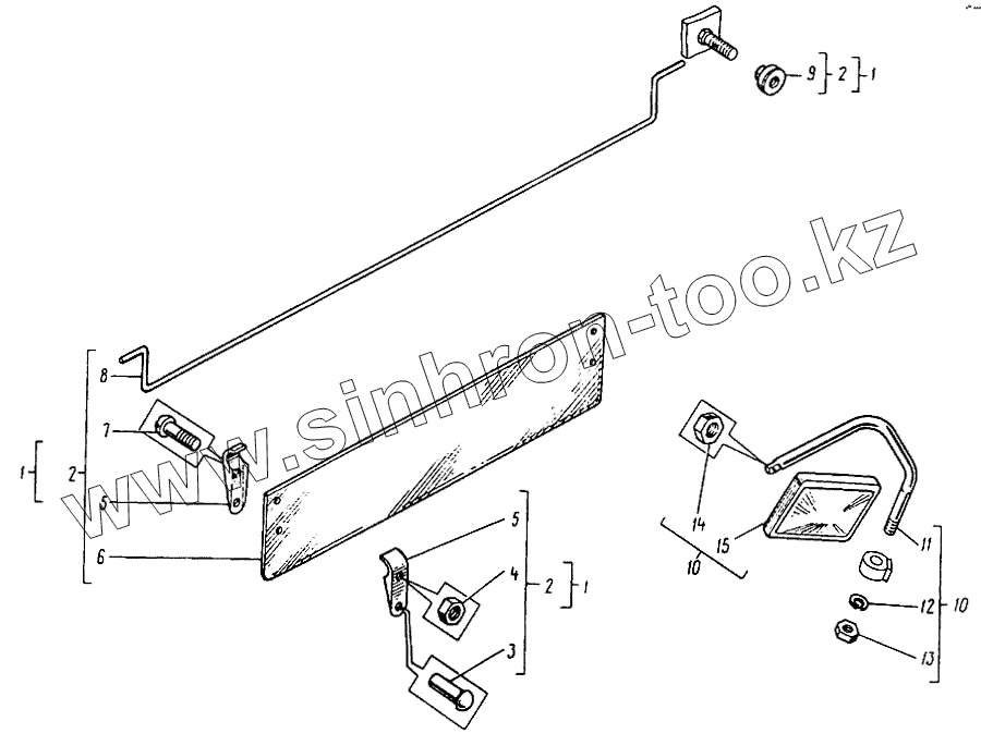 Каталог запасных частей к технике: Кранэкс МТП-71А. Установка солнцезащитного козырька. Установка зеркала