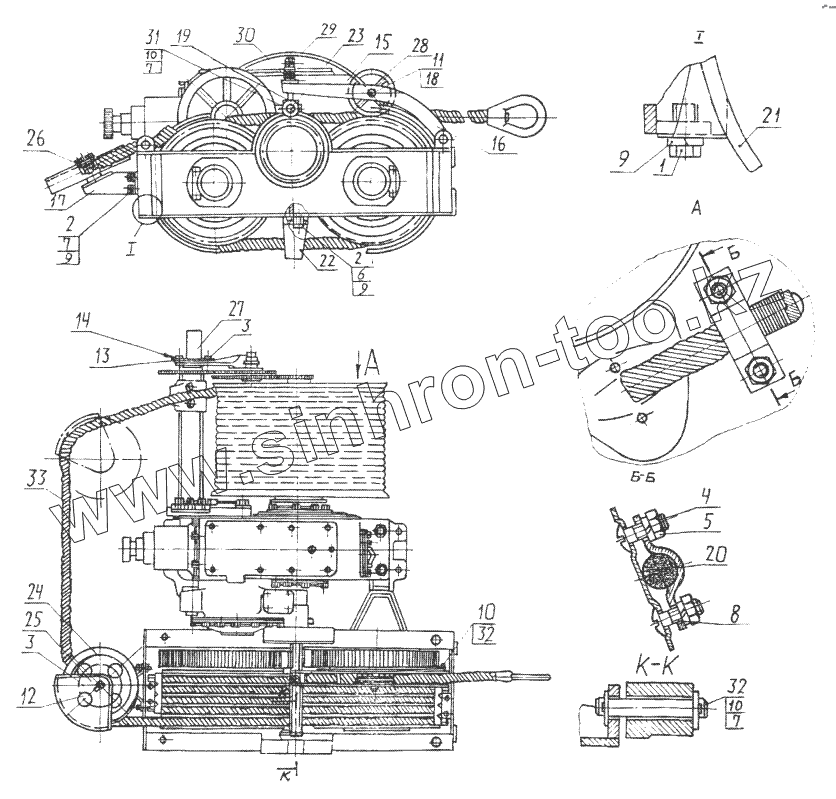 Каталог запасных частей к технике: КЗКТ-74281. Лебедка в состоянии установки 537Г-4500001