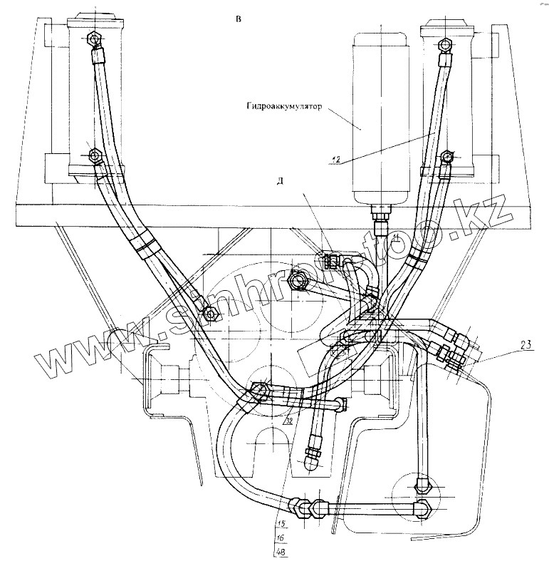 Каталог запасных частей к технике: КЗКТ-74281. Маслопроводы ГМКП с гидрозамедлителем 7428-1719010-10