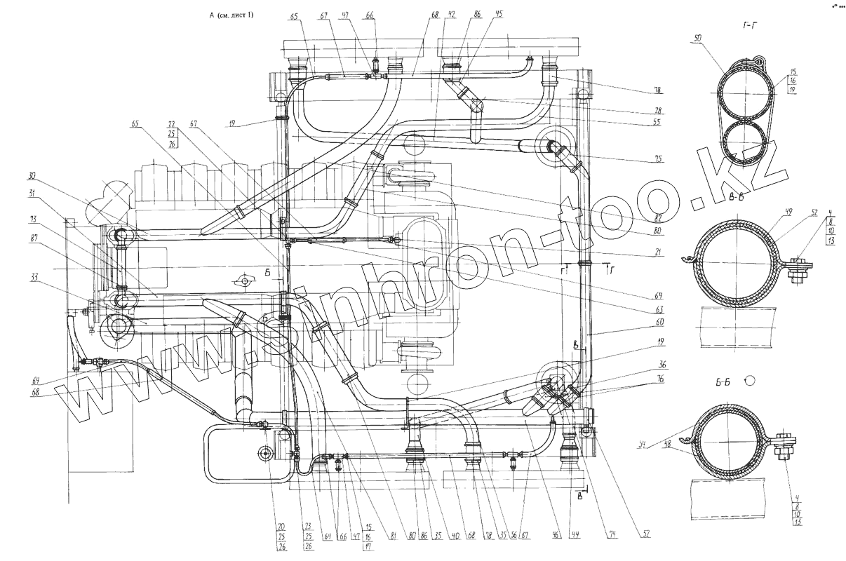 Каталог запасных частей к технике: КЗКТ-74281. Монтаж трубопроводов 7428-1303005-01
