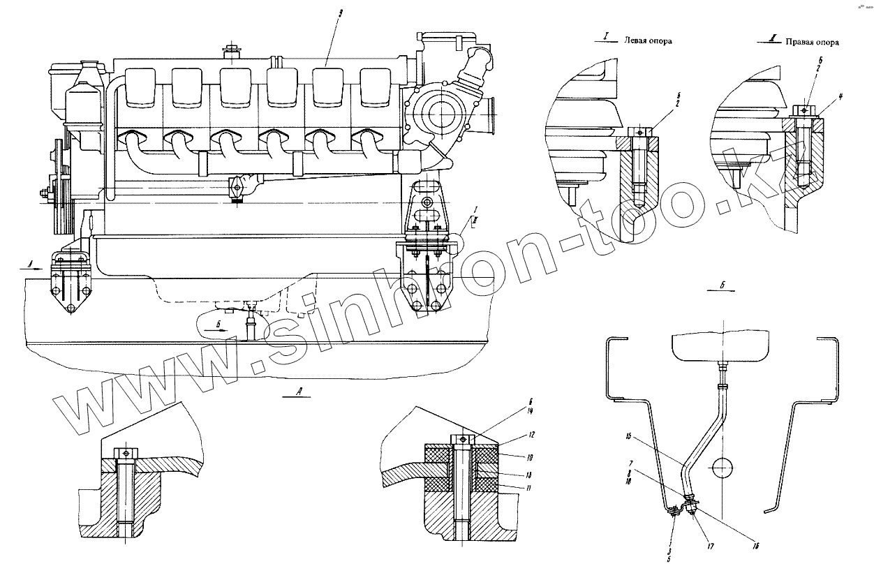 Каталог запасных частей к технике: КЗКТ-74281. Подвеска двигателя 7428-1000003, 7427-1000003-10