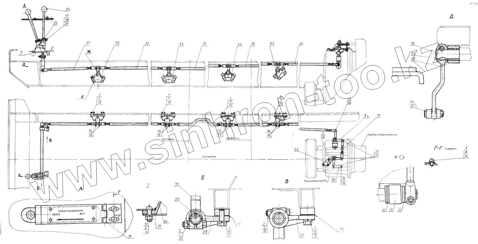 Каталог запасных частей к технике: КЗКТ-74281. Привод управления 7427-4216003