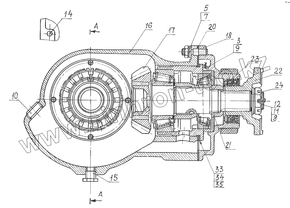 Каталог запасных частей к технике: КЗКТ-74281. Редуктор первого заднего моста 7428-2502010