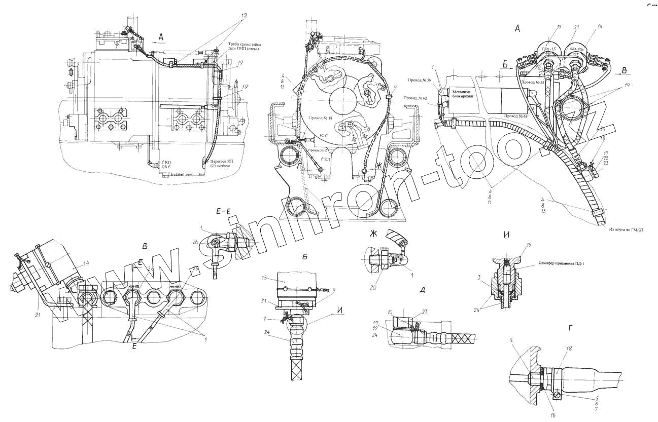 Каталог запасных частей к технике: КЗКТ-74281. Установка датчиков ГМП 7427-3800016