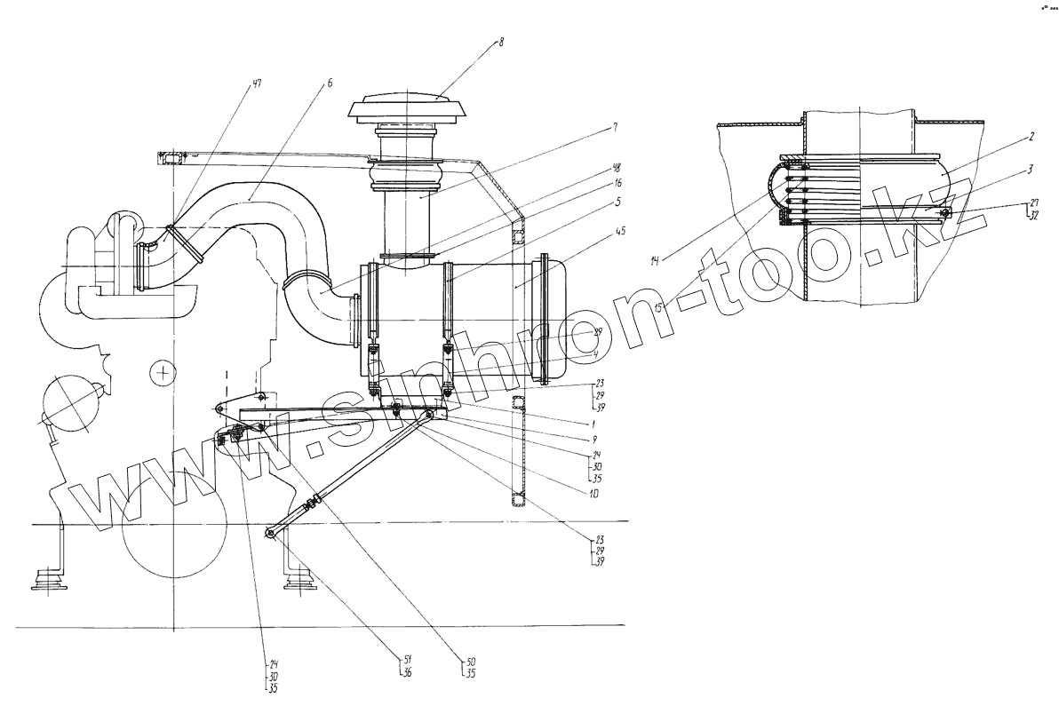 Каталог запасных частей к технике: КЗКТ-74281. Установка фильтра воздушного 7428-1109003-50