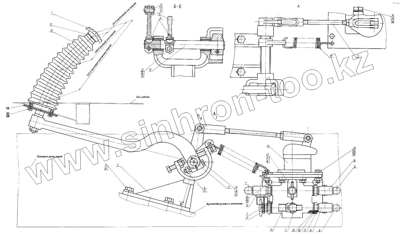 Каталог запасных частей к технике: КЗКТ-74281. Установка педали тормоза 7426-3504001