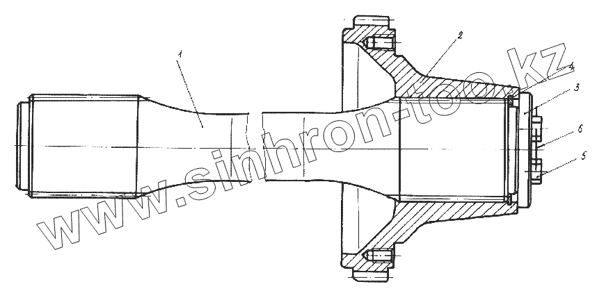 Каталог запасных частей к технике: КЗКТ-74281. Вал торсионный с фланцем 7427-1731022