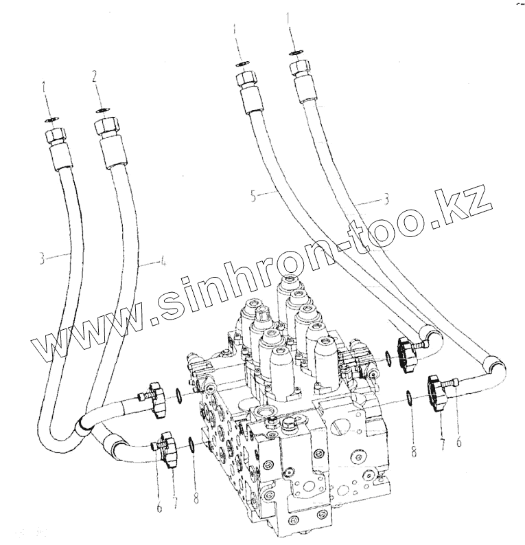 Каталог запасных частей к технике: LiuGong CLG-220. К трубопроводу гидроцилиндров рукояти, ковша