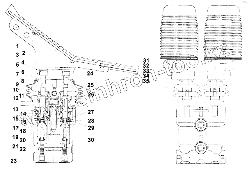 Каталог запасных частей к технике: LiuGong CLG-225. 12C0264-1 Клапан педали хода