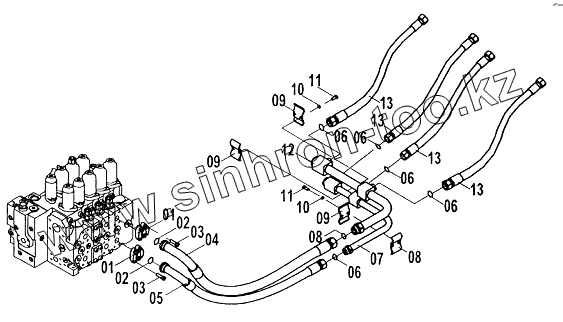 Каталог запасных частей к технике: LiuGong CLG-225. Главный трубопровод (A)