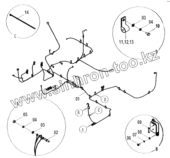 Каталог запасных частей к технике: LiuGong CLG-225. Проводка рамы