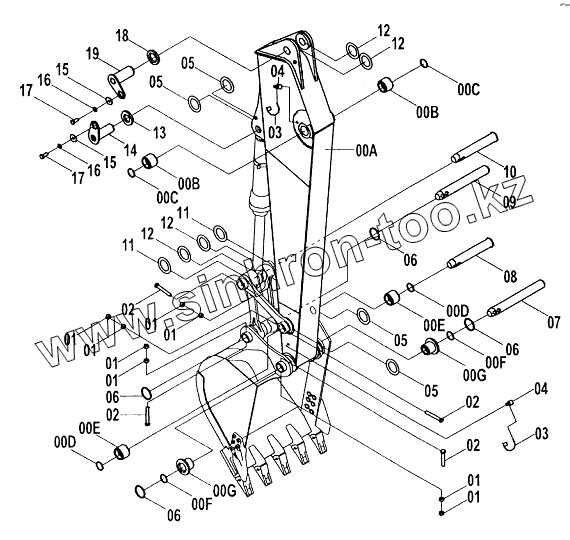Каталог запасных частей к технике: LiuGong CLG-225. Рукоять (2400 мм)