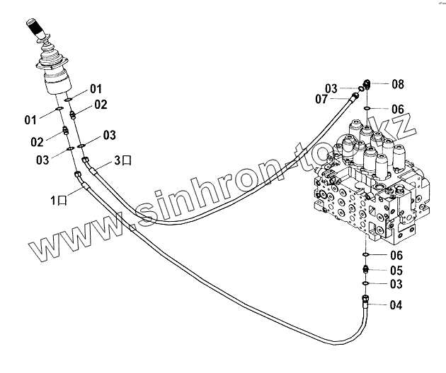 Каталог запасных частей к технике: LiuGong CLG-225. Трубопровод системы управления (J)