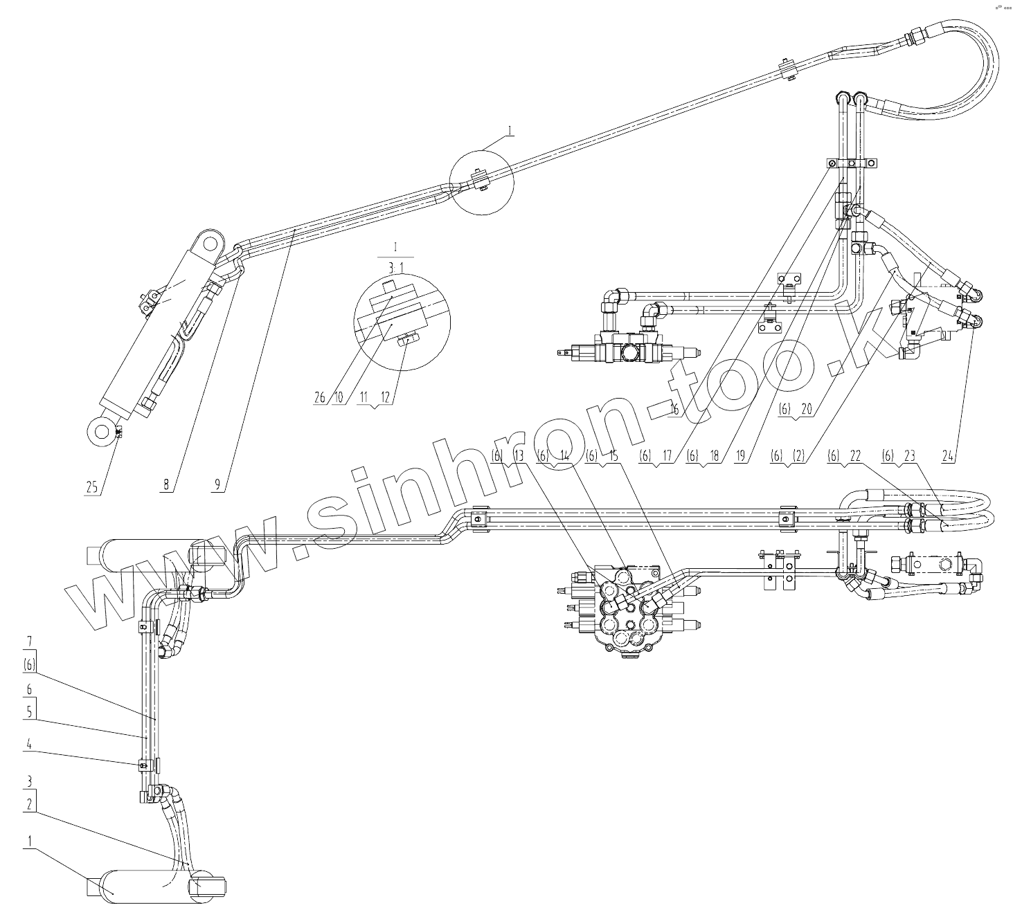Каталог запасных частей к технике: LiuGong CLG-365A. 00C0609 006 TILTING CYLINDER LINES