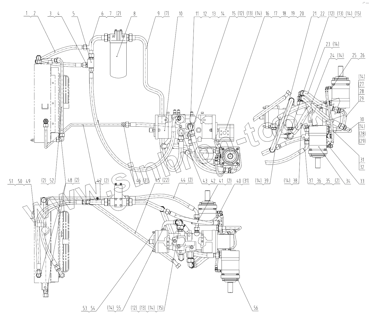 Каталог запасных частей к технике: LiuGong CLG-365A. 13E0128 000 TRAVEL HYDRAULIC SYSTEM