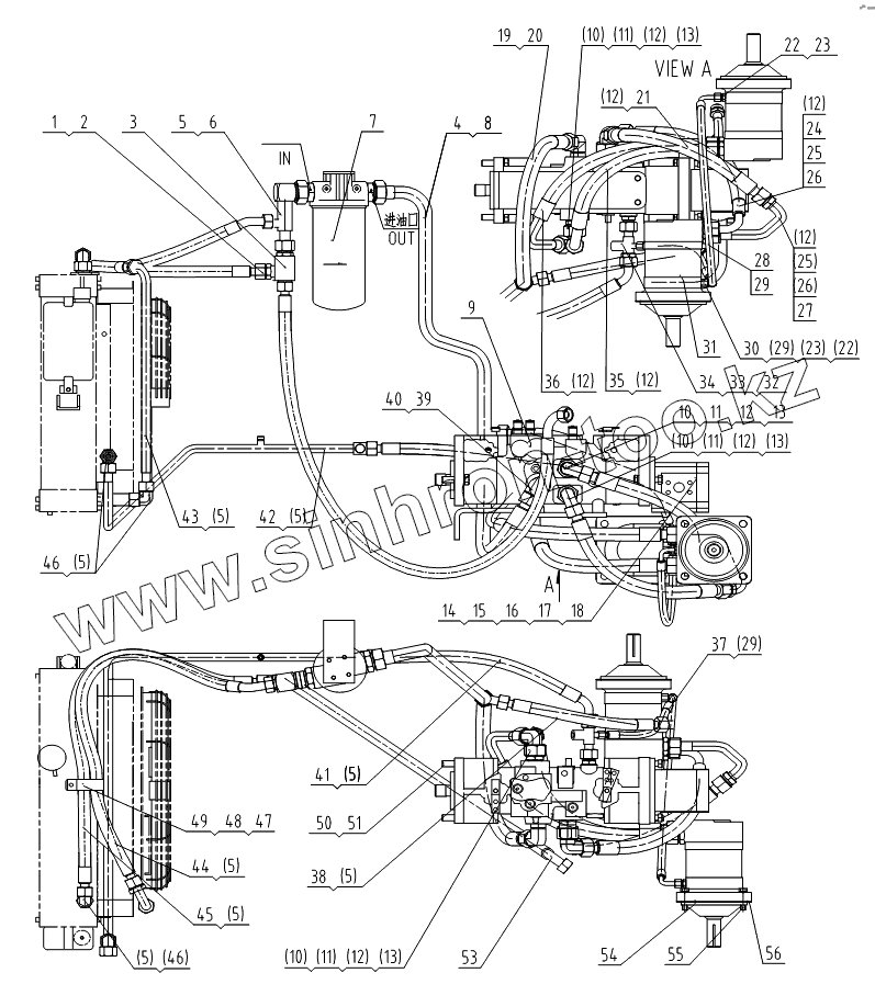 Каталог запасных частей к технике: LiuGong CLG-375A. 13E0044 007 TRAVEL HYDRAULIC SYSTEM