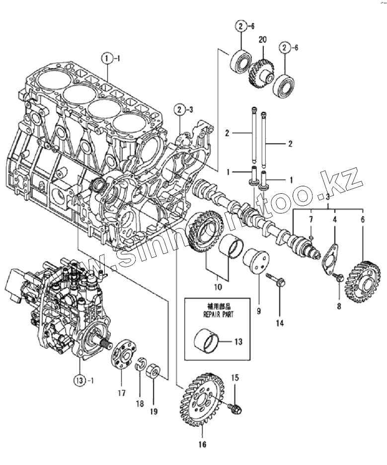 Каталог запасных частей к технике: LiuGong CLG-375A. 40C0863 000 CAMSHAFT & DRIVING GEAR