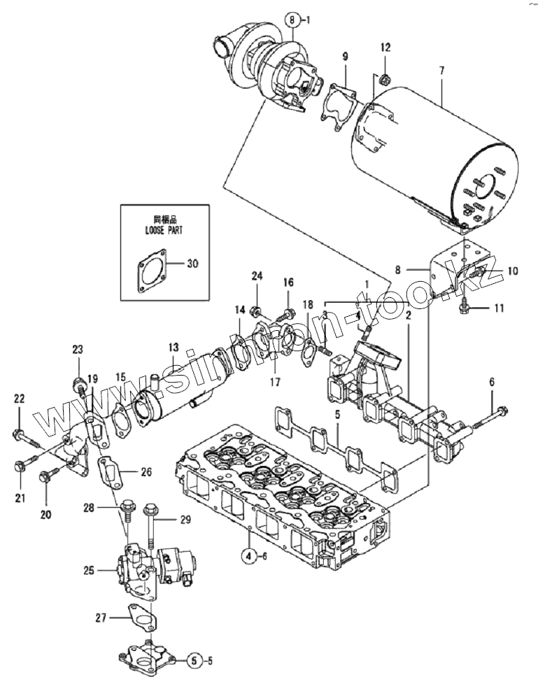 Каталог запасных частей к технике: LiuGong CLG-375A. 40C0863 000 EXHAUST MANIFOLD & SILENCER