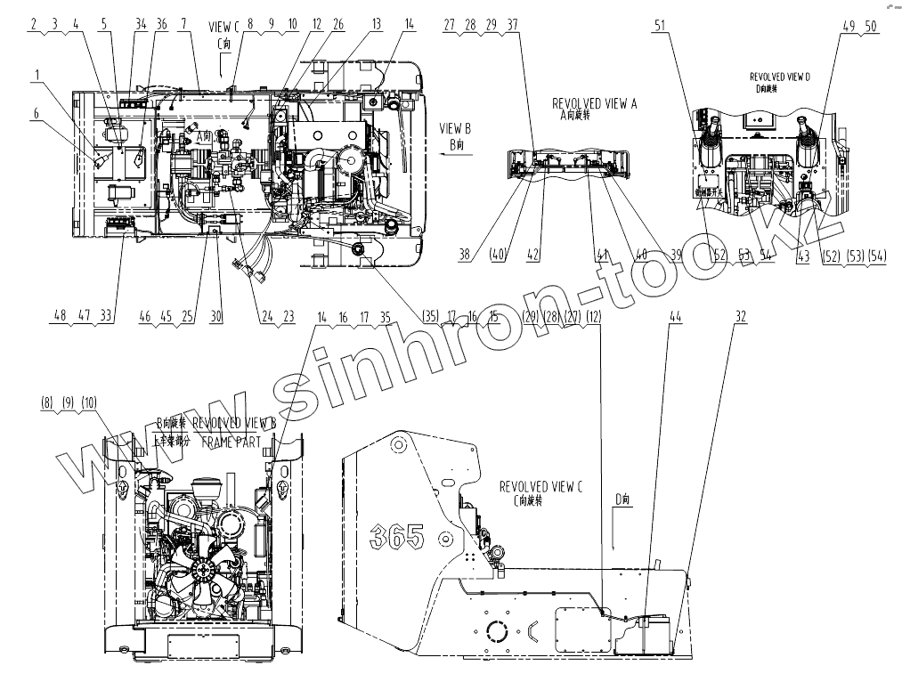 Каталог запасных частей к технике: LiuGong CLG-375A. 46C1627 008 FRAME WIRING AS