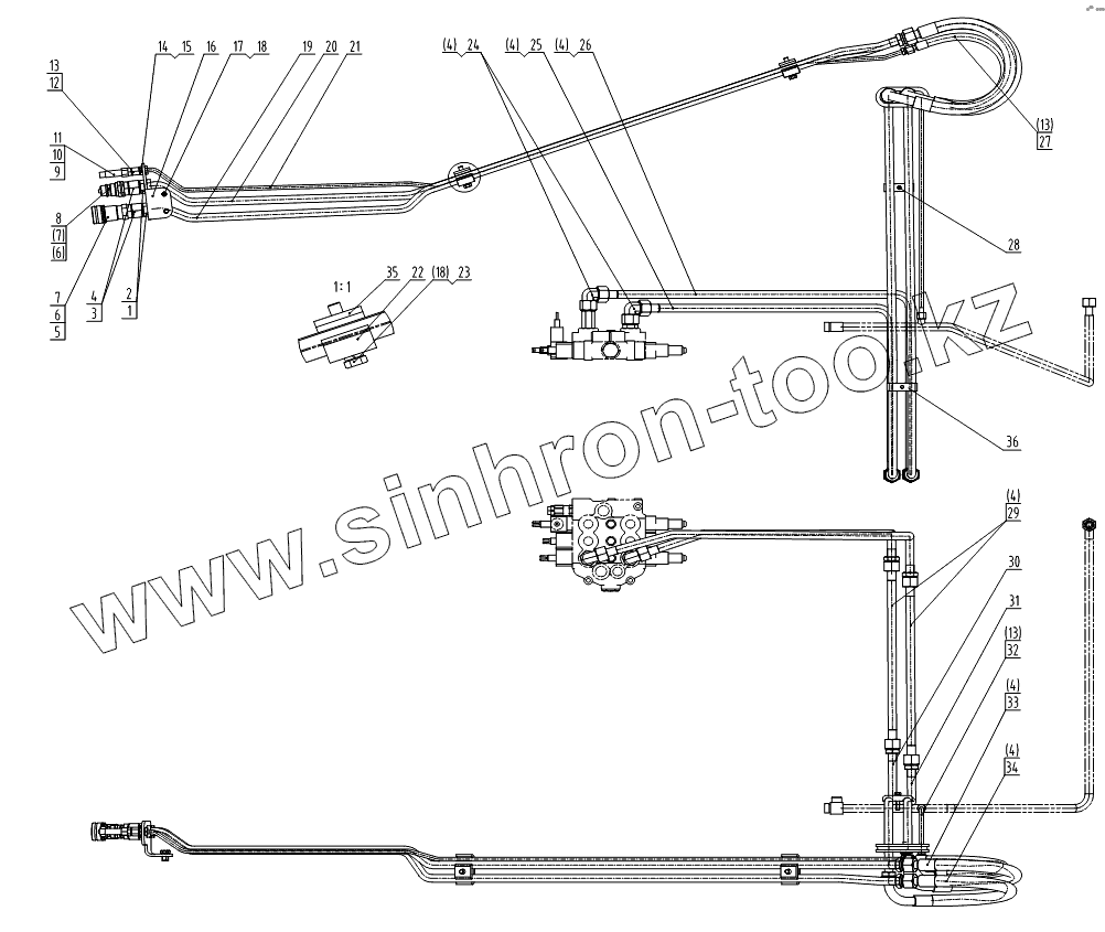 Каталог запасных частей к технике: LiuGong CLG-385A. 00C0806 004 QUICK COUPLER LINES