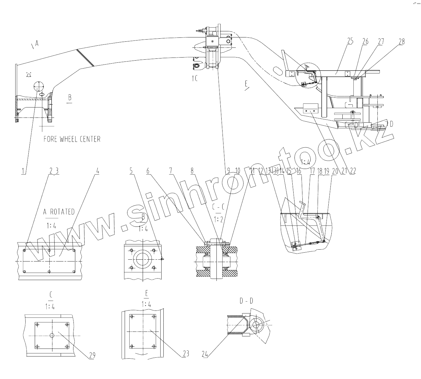 Каталог запасных частей к технике: LiuGong CLG-4165. 08Y0016_001_00 FRONT FRAME AS