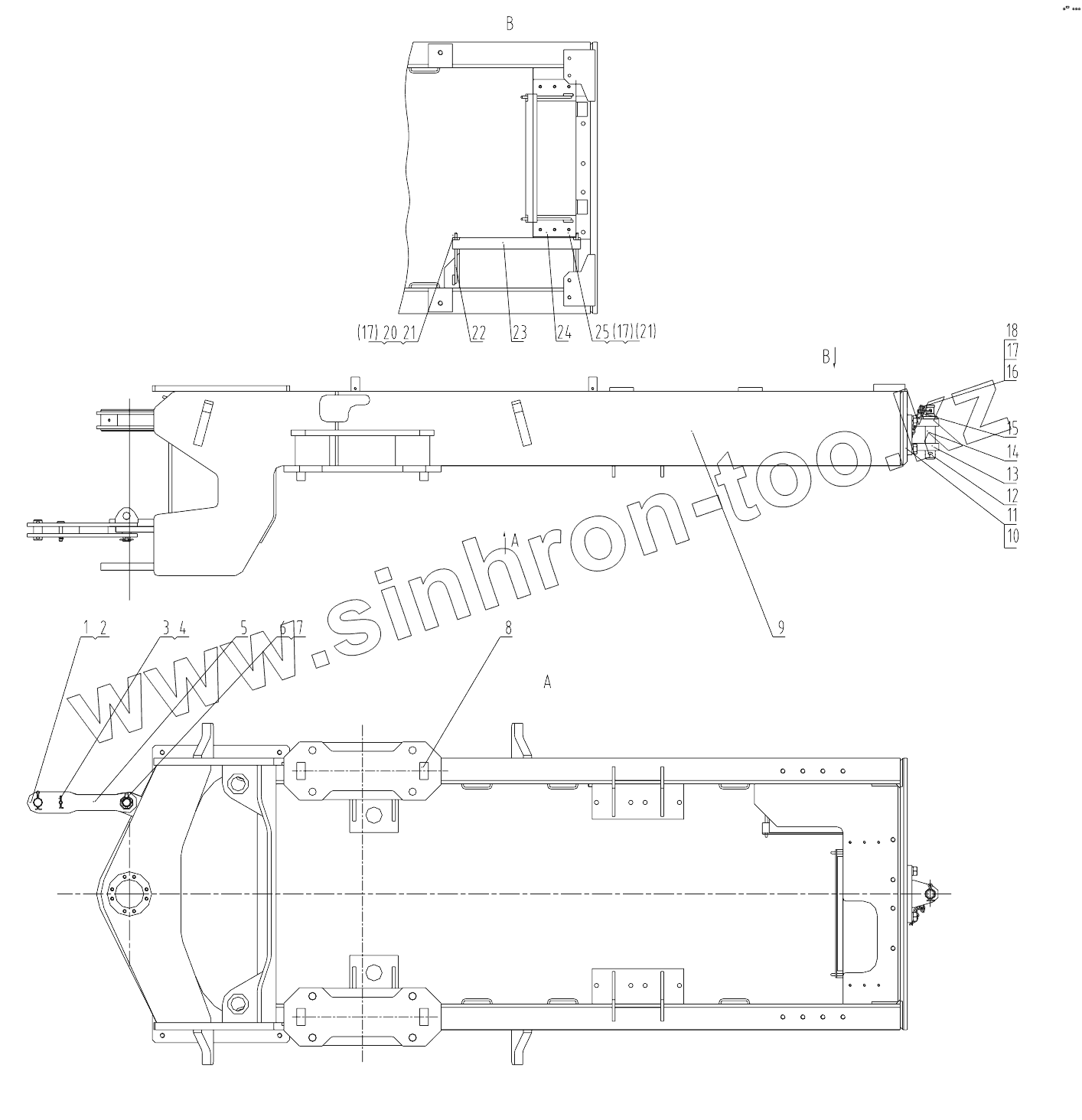 Каталог запасных частей к технике: LiuGong CLG-4165. 08Y0038_000_00 REAR FRAME AS