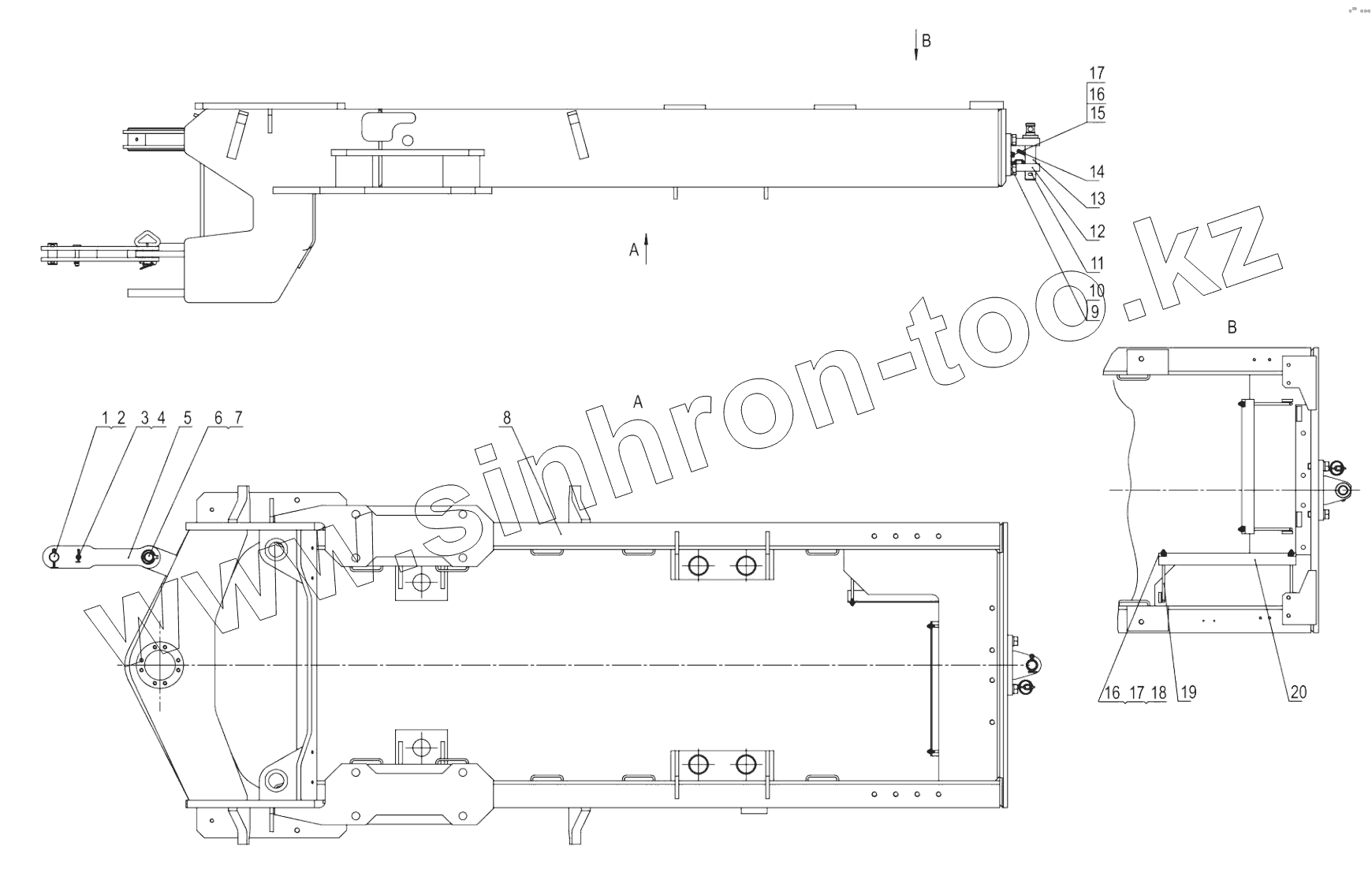 Каталог запасных частей к технике: LiuGong CLG-4165. 08Y0561_000_00 REAR FRAME AS