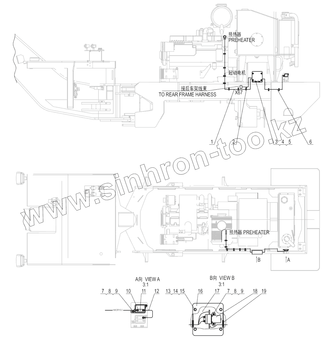 Каталог запасных частей к технике: LiuGong CLG-4165. 49C1740_000_00 GRID HEATER WIRING