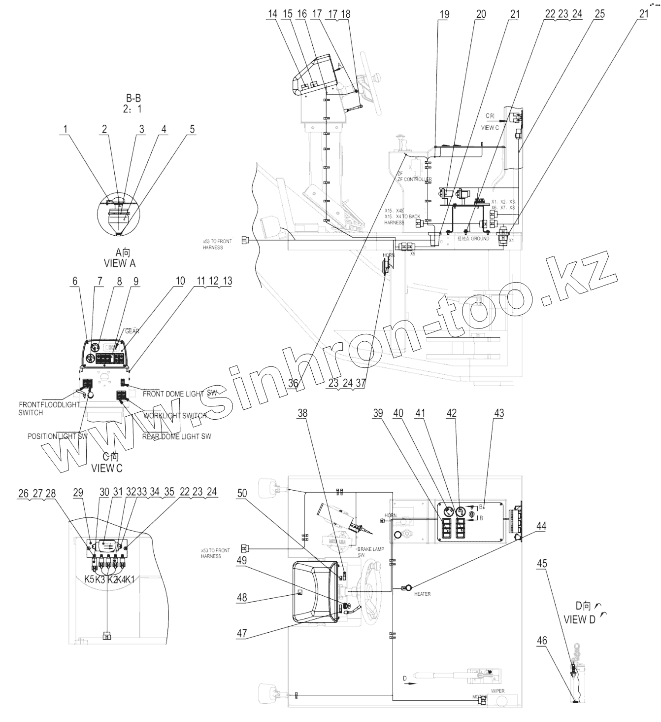 Каталог запасных частей к технике: LiuGong CLG-4165. 49C2627_000_00 CAB WIRING