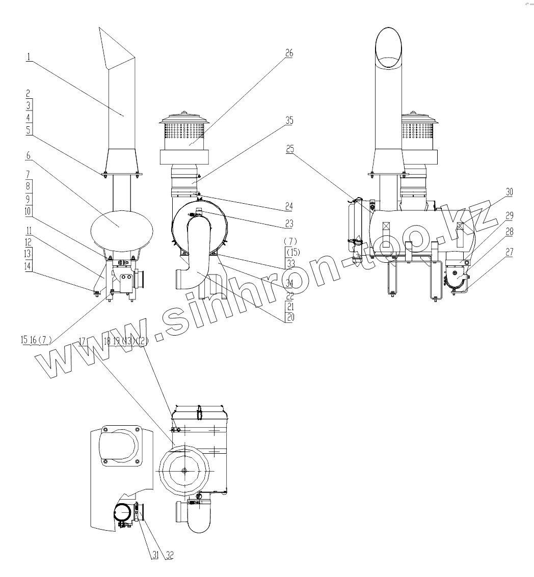 Каталог запасных частей к технике: LiuGong CLG-4215. 00Y0192-002-00 INTAKE AND EXHAUST SYSTEM