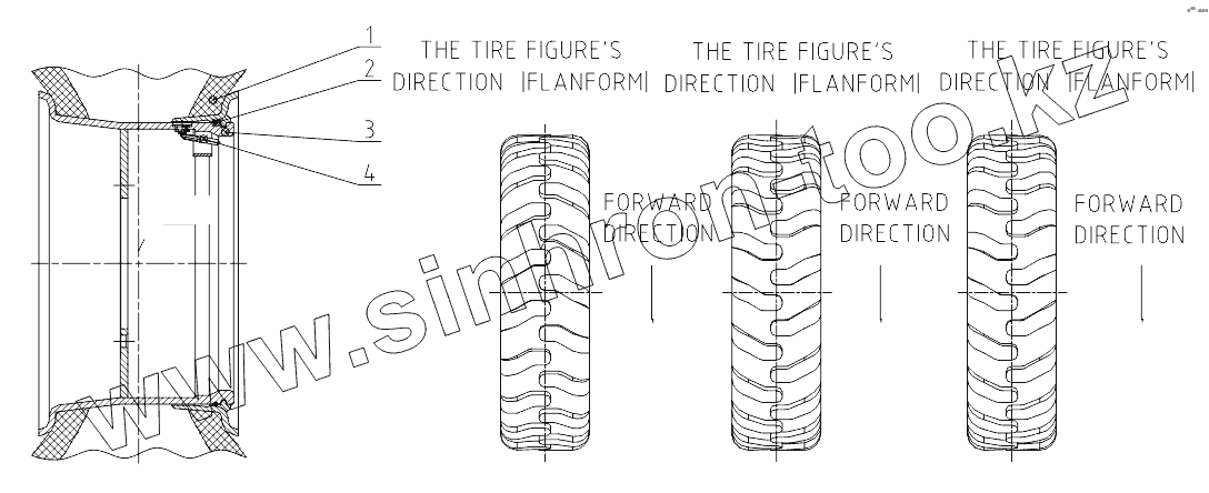 Каталог запасных частей к технике: LiuGong CLG-4215. 01Е0371-001-00 TYRE AND RIM AS