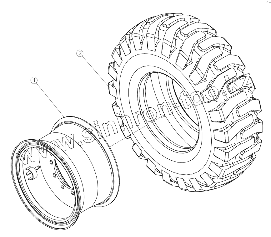 Каталог запасных частей к технике: LiuGong CLG-4215. 01Y0097 001 00 TYRE AND RIM AS