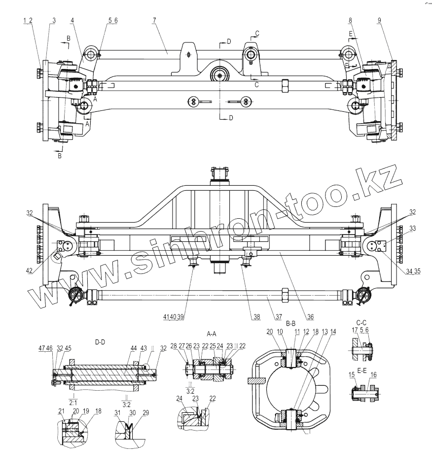 Каталог запасных частей к технике: LiuGong CLG-4215. 01Y0175-000-00 FRONT AXLE AS