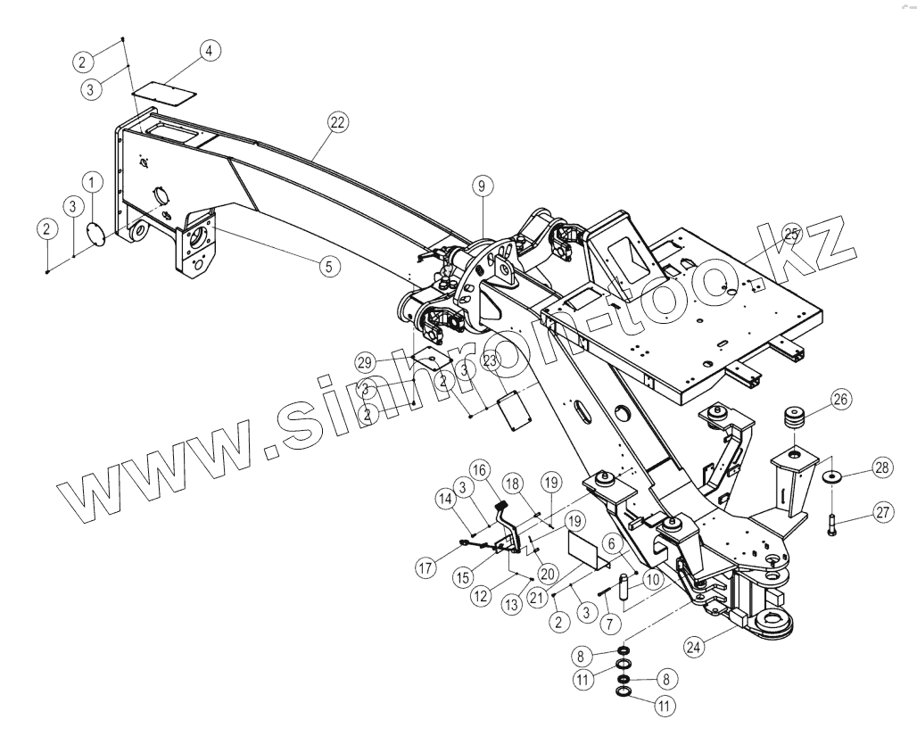Каталог запасных частей к технике: LiuGong CLG-4215. 08Y0456-000-00 FRONT FRAME AS