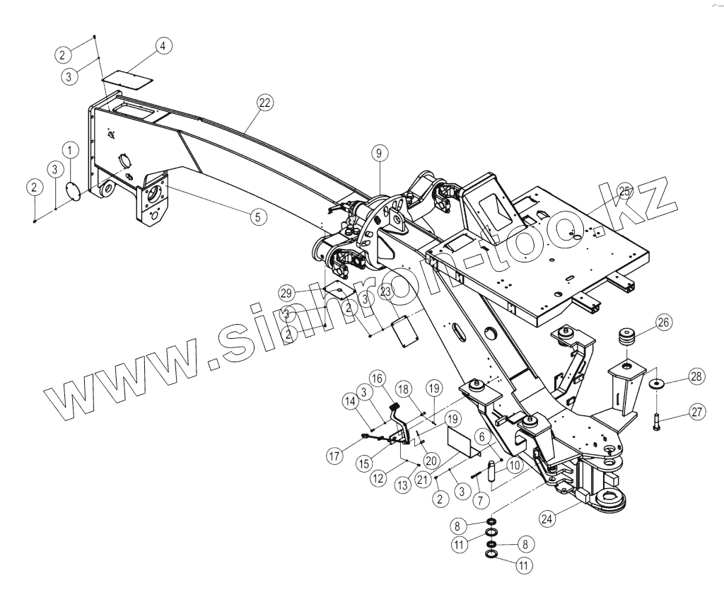 Каталог запасных частей к технике: LiuGong CLG-4215. 08Y0475-000-00 FRONT FRAME AS